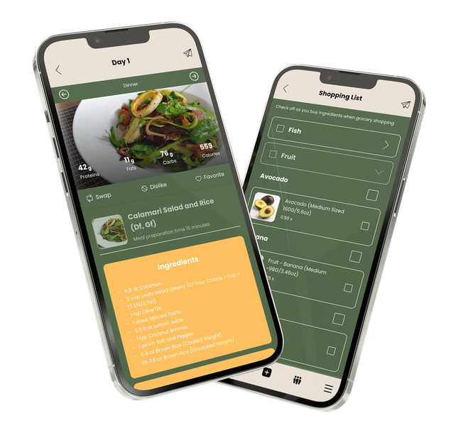 Meal plans fully customized to YOU & YOUR goals as well as your schedule and lifestyle which will be updated every month based on your progress. Choose from General, Vegetarian, Vegan, Dairy-Free, Gluten-Free and many more meals!
